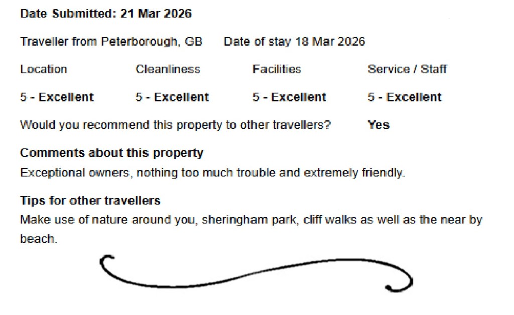Only a 10 minute walk to Sheringham’s great shops, restaurants and pubs